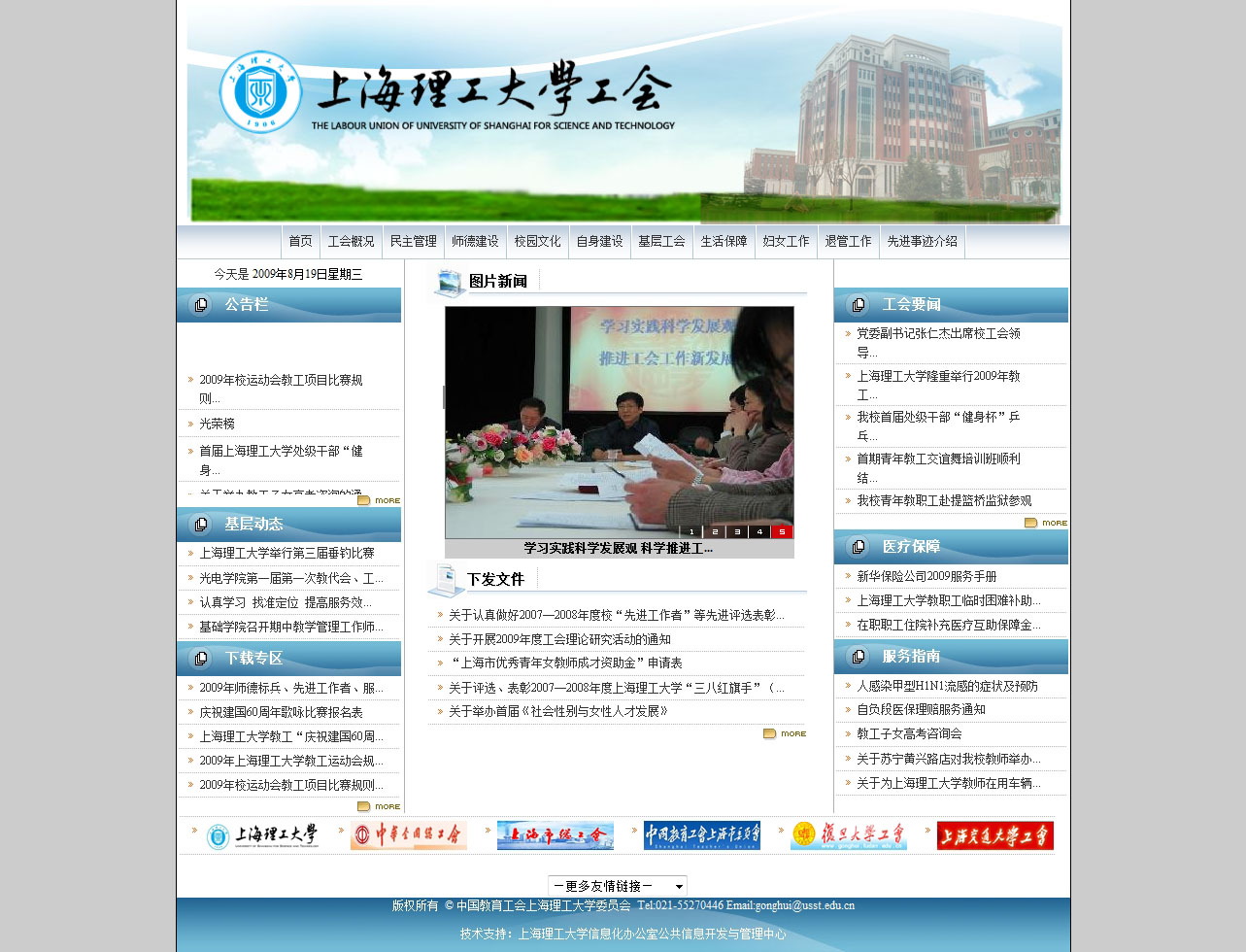 为学校工会网站做的网页,由于学校用了一套叫WebPlus的网站群管理系统,所以就做了html的网页作为模板,后台蛮新鲜的,可惜不能截图给大家看,就看看首页吧!