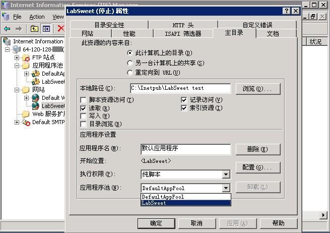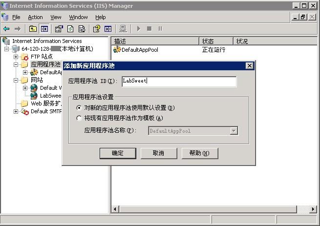 事实上如果你只需要建立一个站点,这步跳过也可。但是我们为了使各位对应用程序池有更深入的了解,所以着重指出这一步。至于为何如此配置,我们将会在今后特别写一篇关于应用程序池的日志来阐明。