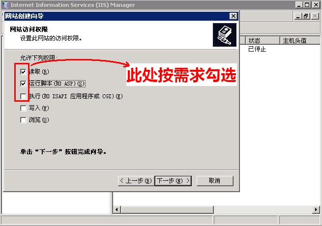 5、访问权限中“读取”是必备的,若需要支持ASP/PHP请选择运行脚本。